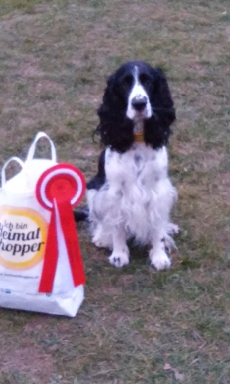 Die kleine Maus war so toll. Gruppenübung Verhalten gegenüber anderen Hunden 10, Stehen und betasten da war sie von den Zuschauern abgelenkt 7,5 (brauchte mehrere HZ fürs Steh), Ablage 10, Leinenführigkeit 10, Sitz 10, Box 8,5, Abrufen 10, Apport 9,5, Diztanz (da hat sie wieder den Zuschauern zugehört und brauchte mehrere HZ) 6, Zusammenarbeit wegen ablenken lassen 7. Jetzt weiß ich das ich dringend unter mehr Ablenkung üben muss.