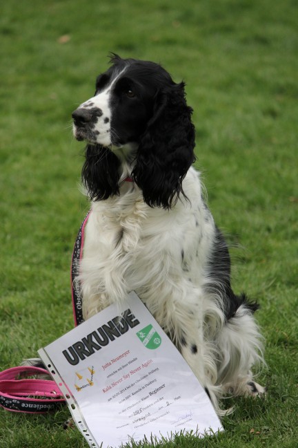 Heute hatten wir den ersten Start in der Rally Obedience Prüfung. Wie immer konnte ich mich auf Kala verlassen, bei ihrer ersten Prüfung in der Sparte hat sie ein V gelaufen mit 94 von 100 Punkten. Von den 6 Punkten die uns abgezogen wurden gingen 5 Punkte auf mein Konto. Jetzt sind wir schon startberechtig für Klasse 1.