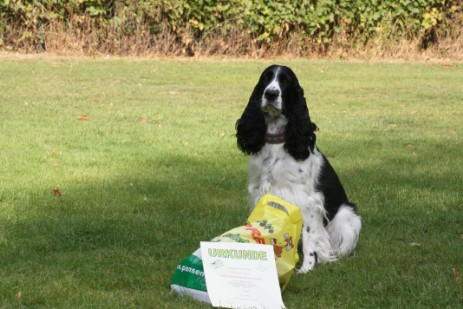Heute bin ich mit Kala losgezogen um eine Begleithundeprüfung zu machen. Ich fang mal mit unserer schlechten Übung an: Platz mit abrufen, Kala hat sich etwas schräg hingelegt und dann natürlich (weil ich es ihr nicht beigebracht habe *unnütze Übung für Obedience*) den Vorsitz nicht gezeigt. Somit sind wir bei der Übung ins sehr gut gerutscht, alle anderen Übungen hat Kala im vorzüglich gemacht. Das bedeutete am Ende das sie als jüngste Starterin (16 Monate) von 9 Startern die BH als Beste bestanden hat. Hab ich schon gesagt das ich die kleine Maus so toll finde und stolz auf sie bin?