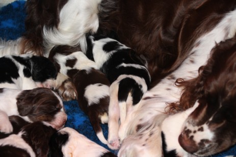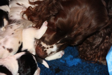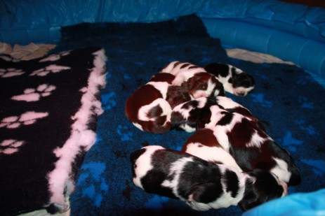 Heute sind die Welpen geboren. Ruby hat in Rekortzeit 8 Welpen auf die Welt gebracht, die Erste ist um 0.05 Uhr geboren und die Letzte um 2.45 Uhr. Ruby hat alles super sicher gemeistert und ist eine tolle Mutter.
