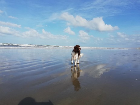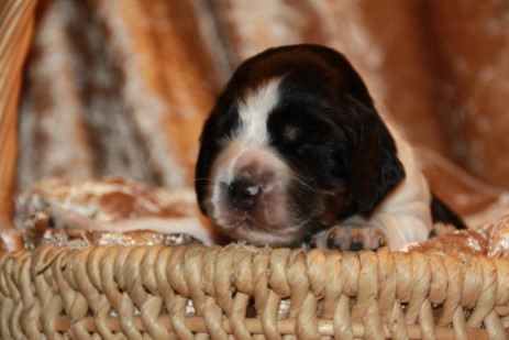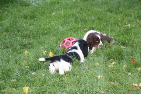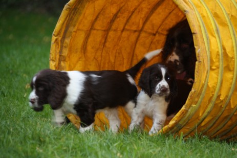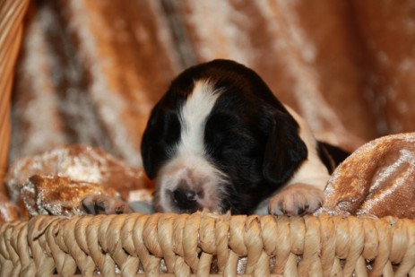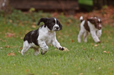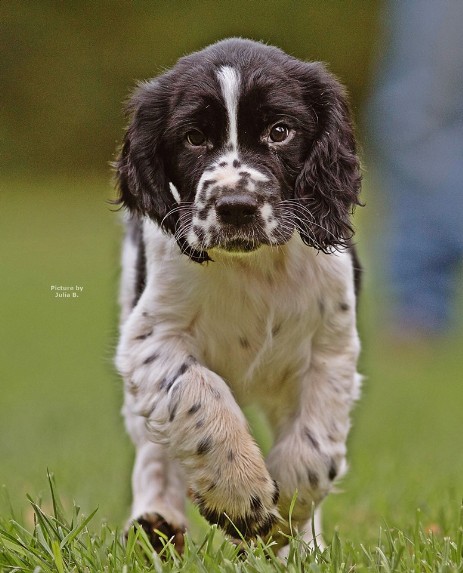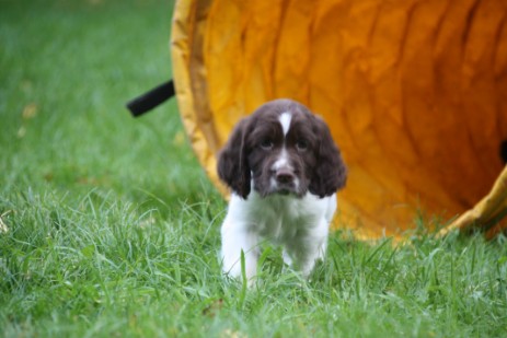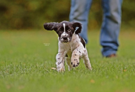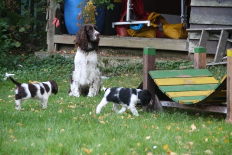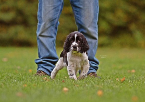 Hopper ist seinem Papa Milo sehr ähnlich, hat aber auch einiges von Mama mitbekommen - eine gelungene Mischung sozusagen. So ist er insgesamt etwas kräftiger gebaut und tiefer im Brustkorb als Papa, das brachte Mama mit und das kompakte Format ist unübersehbar vom Papa. Seinem Wesen haben beide den Stempel aufgesetzt, ein ESS, wie wir ihn uns wünschen: Freundlich, tolerant, aufgeweckt, leichtführig, verspielt und für jede Art von Training schnell zu begeistern.